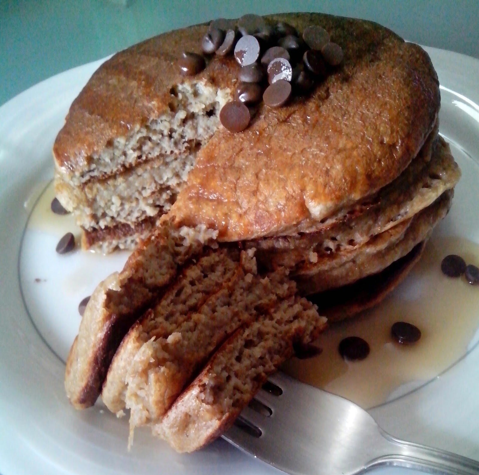 Vierte todos los ingredientes en la licuadora y deja reposar la mezcla cinco minutos (esto permitirá que crezca y quede esponjosa). Pasado el tiempo, vierte el contenido porcionado en un sartén pequeño con aceite de coco (u oliva) esparcido. Deja cocinar dos minutos, a fuego bajo, y voltea. Repite el proceso con el resto de la mezcla. Sirve con maple y chocolate.
